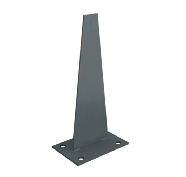 These base plates are used in fencing projects where both functionality and aesthetics are considered. The "Shark Fin" is a decorative element intended to enhance the appearance of the fencing while serving the essential function of securely anchoring the fence posts to the ground or concrete.